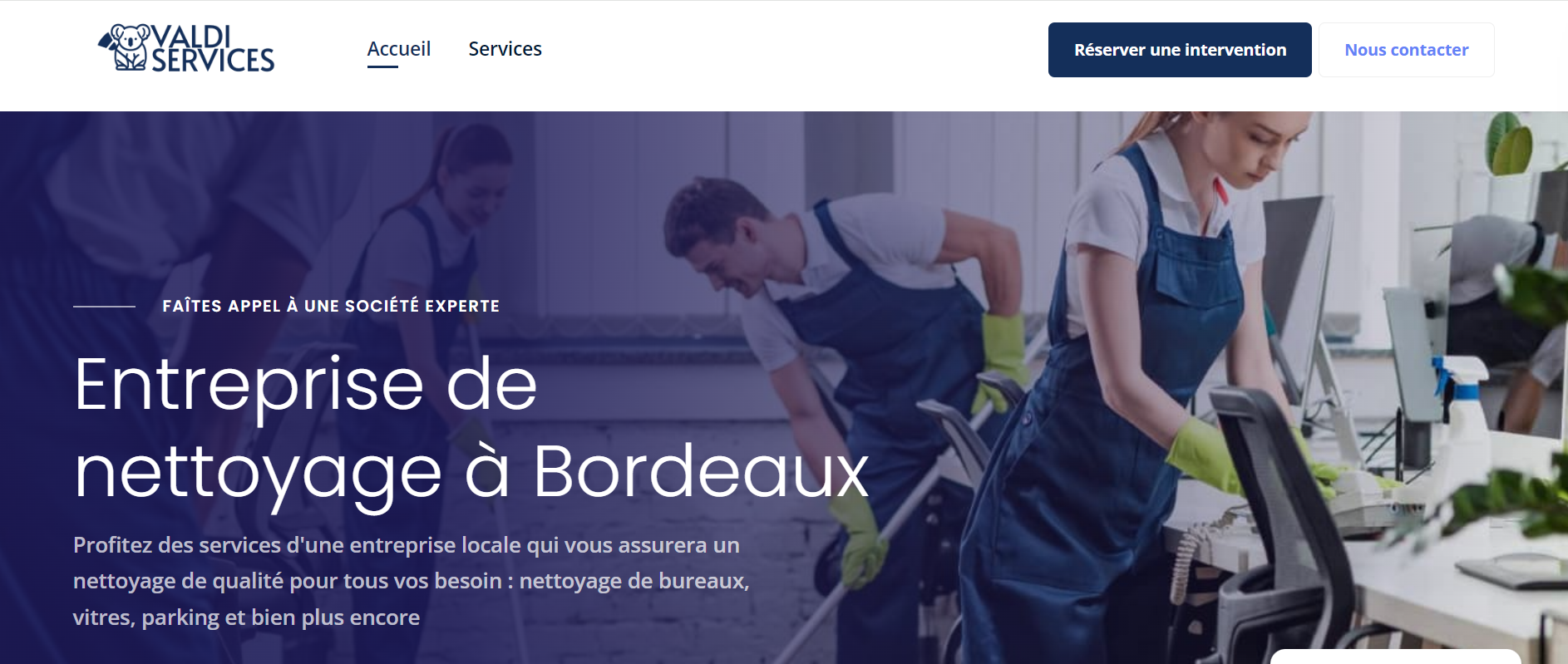 FOUTECH est actuellement en train de réaliser le site web de ValdiServices, une entreprise de nettoyage réputée à Bordeaux. Cette collaboration a pour objectif de créer une plateforme en ligne moderne et efficace, reflétant la qualité et le professionnalisme des services de nettoyage offerts par ValdiServices.